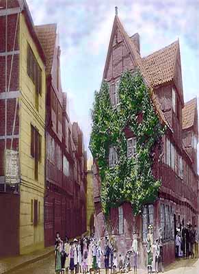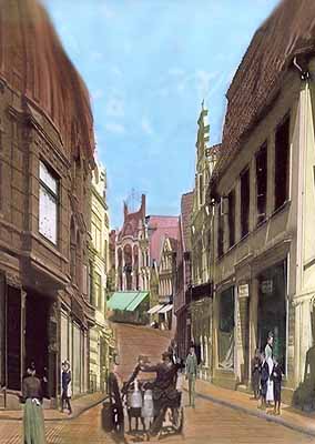 Nachkolorierung und Verfremdung einer Fotografie der Alten Holstenstraße